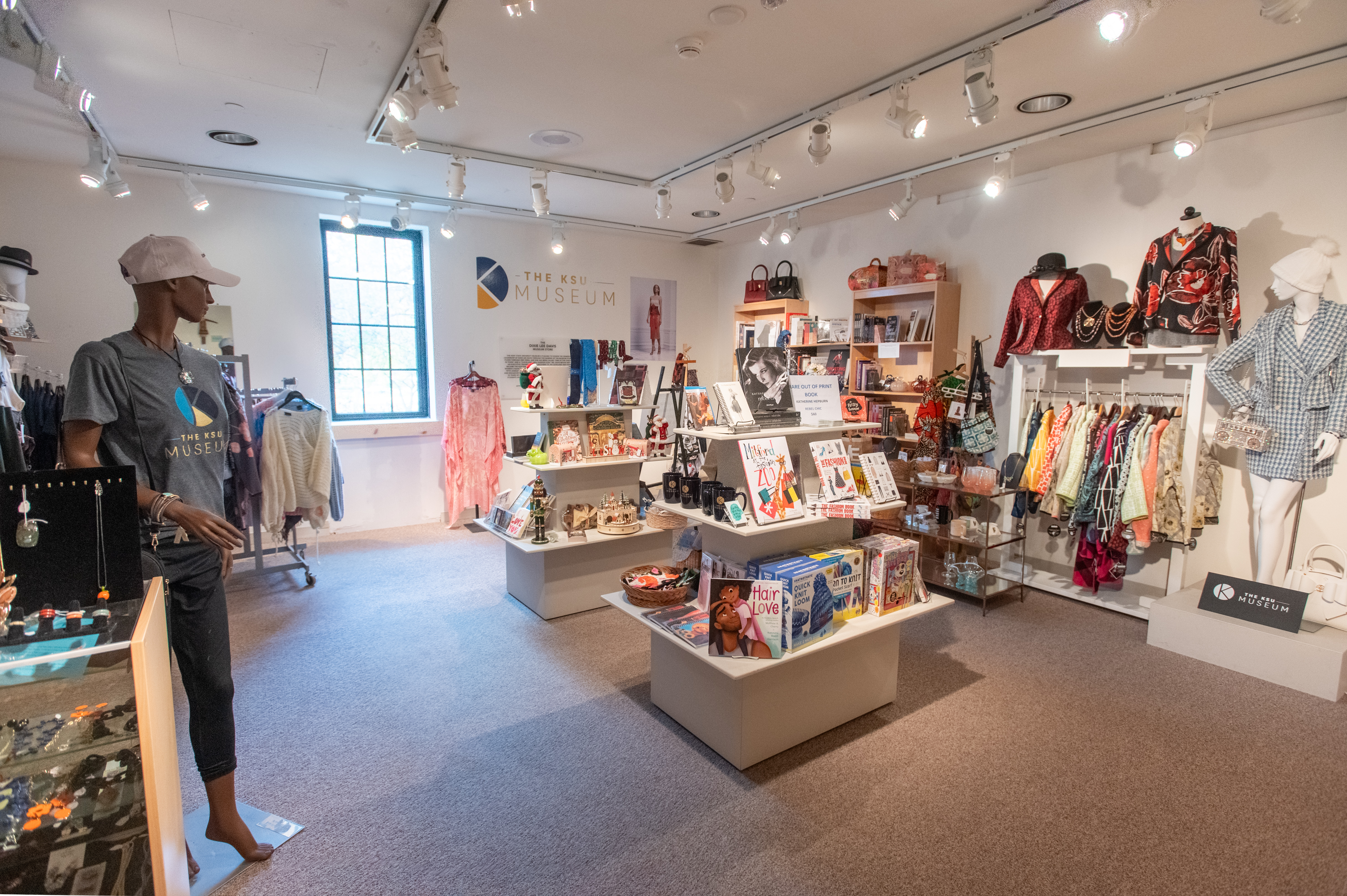 The Dixie Lee Davis Museum Store is located on the left side of the lobby as you enter the museum. Jewelry, apparel, books, stationery, and other fashion-related merchandise are available for purchase. The store also features select student and faculty made merchandise from the School of Fashion Design and Merchandising. All faculty, staff, and students with a current KSU I.D. receive a discount of 20% off regular price items in the Museum Store. If you aren't able to visit the Museum Store in person, you may order items by contacting museum@kent.edu.